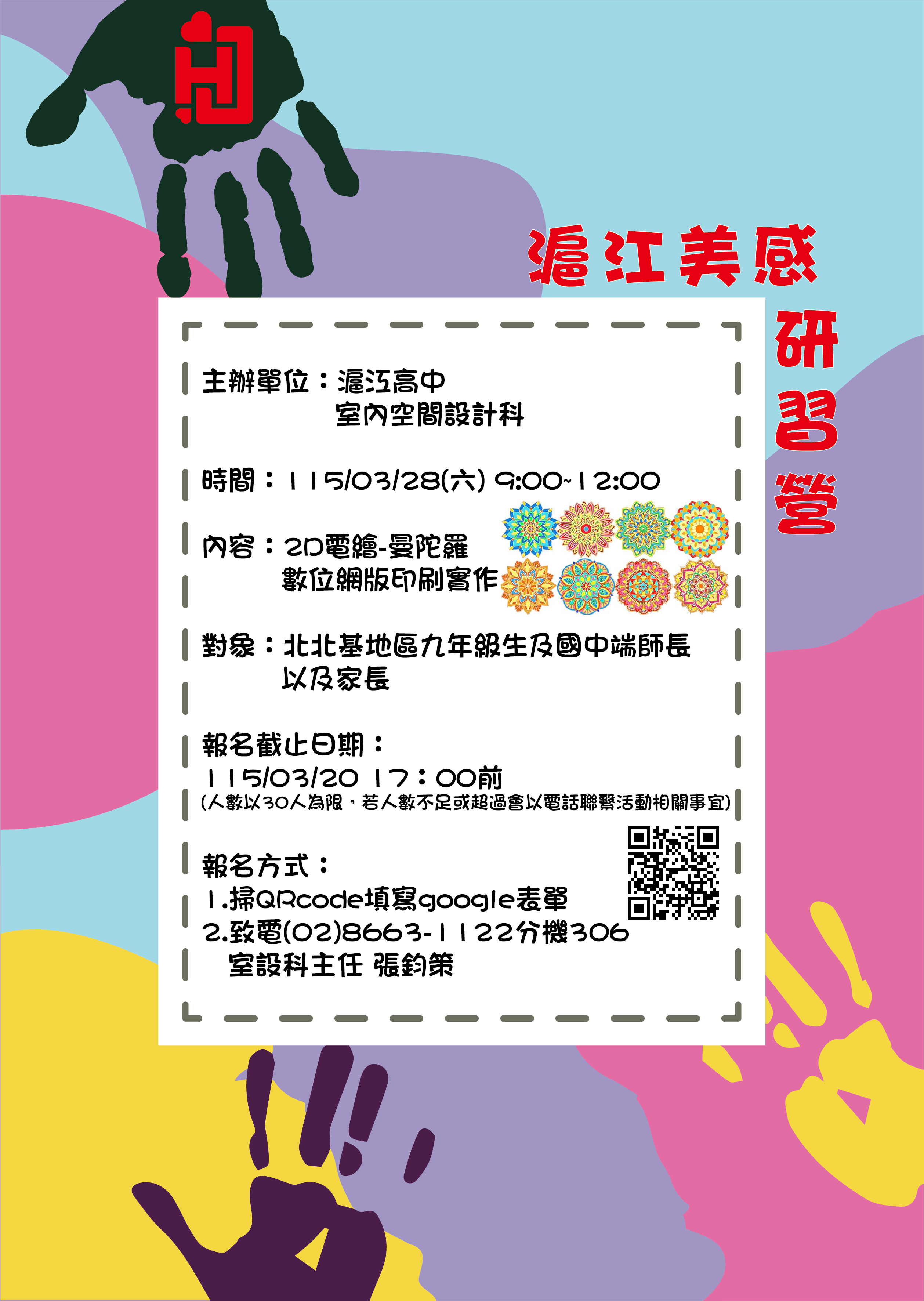 本校辦理室內空間設計科「生活美學體驗:2D電繪曼陀 羅」職涯探索活動暨「櫻見學堂」春日祭系列活動,誠摯 邀請 貴校師生及家長踴躍參加,請 查照。