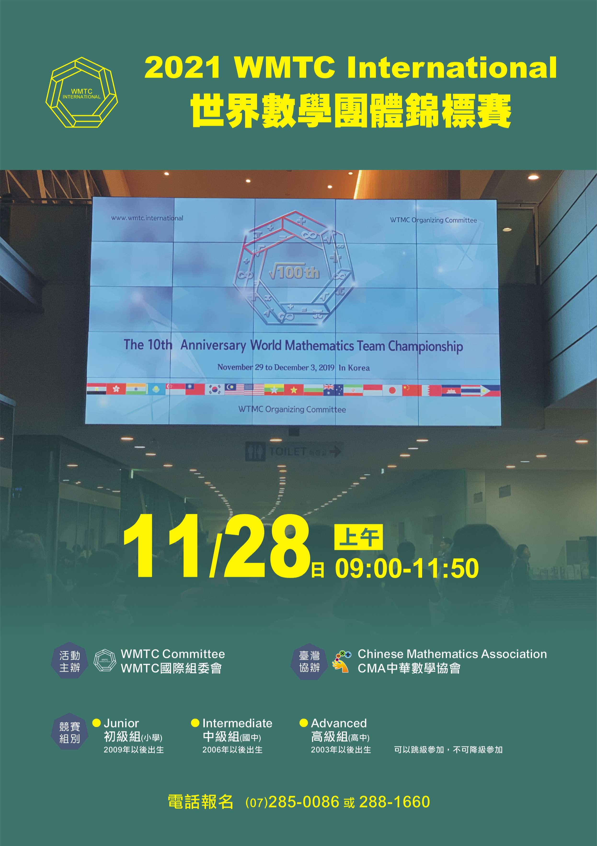 二、檢附「WMTC International世界數學團體錦標賽」競賽活 動企劃書及團體報名表格,供 貴校參閱。