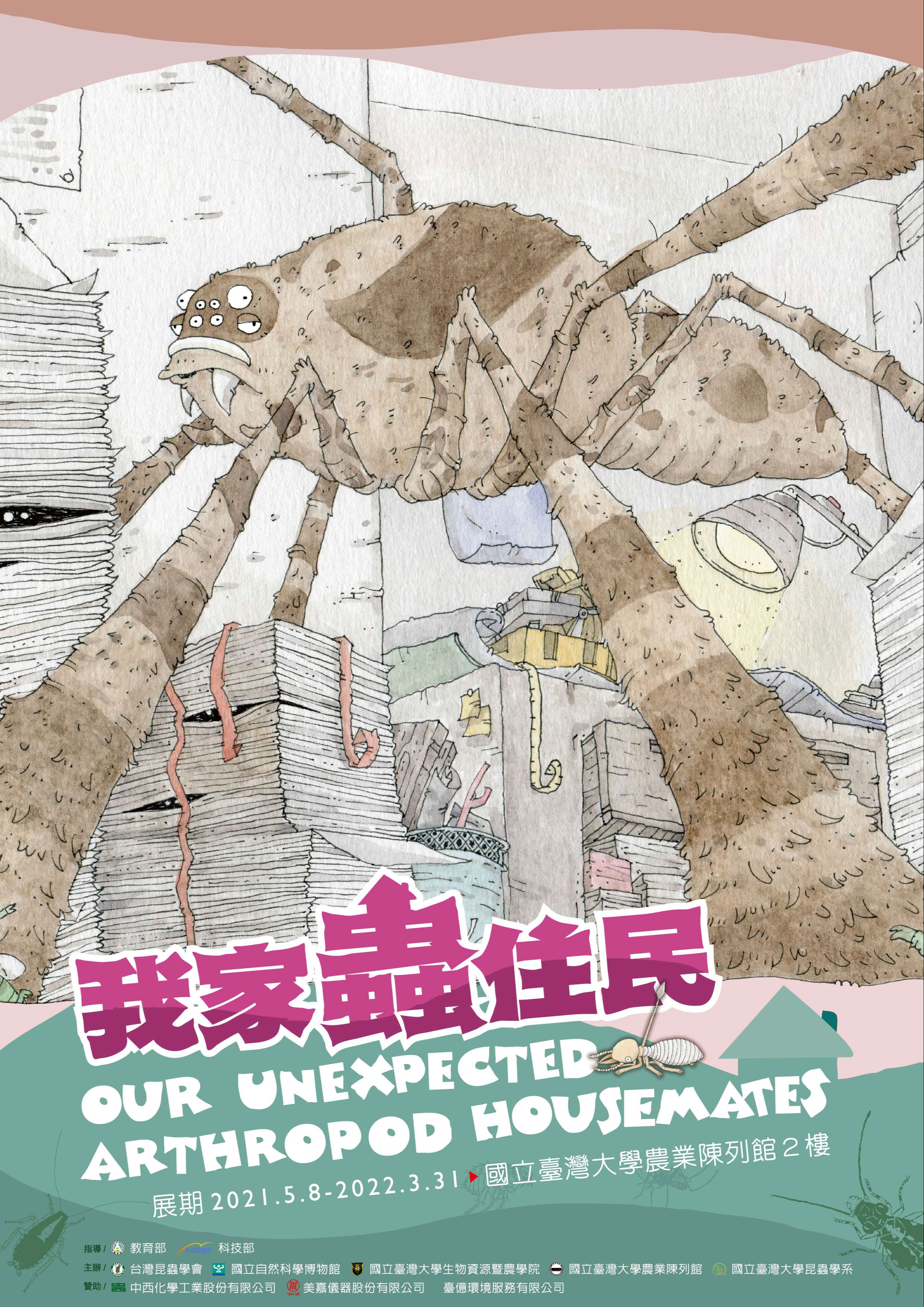 (二)展覽主題:展場分為「我們的家」、「害蟲?益蟲」、 「歡迎光臨」、「蟲與牠們的棲地」、「誰躲在我 家?」、「特異功能」、「小小蟲子我怕怕」、「請你 麥擱來」、「如果家裡沒有蟲」九大主題,搭配實體家 具與不同空間格局呈現家的感覺,讓民眾在輕鬆情境 中,實地了解家中節肢動物種類及棲息環境。