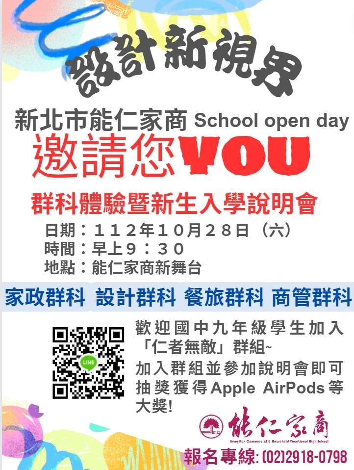 一、本校訂於112年10月28日(六)舉辦校園開放日(open day) 活動,活動訊息請參閱附件,敬請惠予公告,並鼓勵貴校 學生踴躍報名。