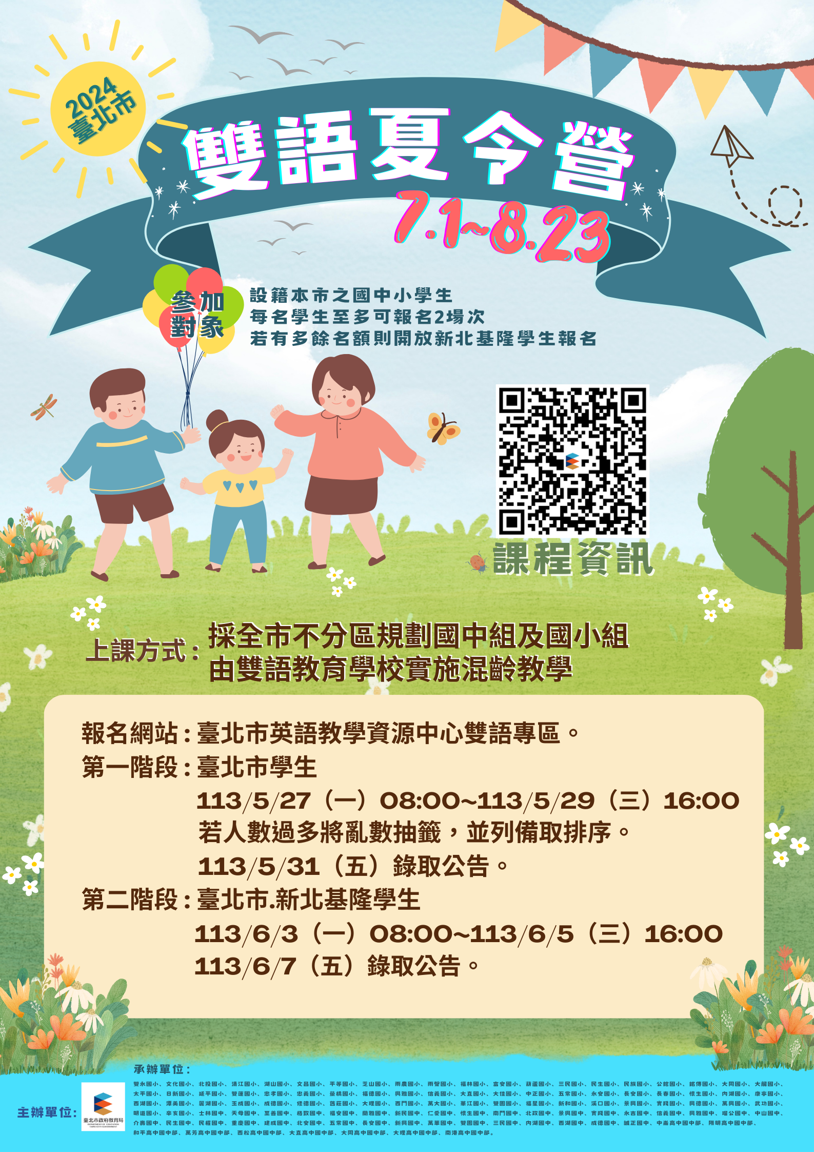 (1)臺北市學生報名時間為113年5月27日(星期一)上午8時至113年5月29日(星期三)下午4時止,錄取名單將於113年 5月31日(星期五)公告。