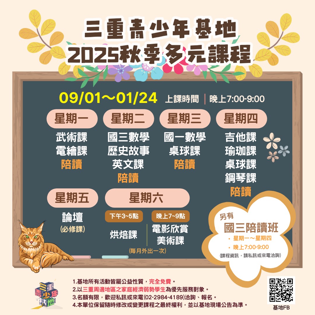 人本教育基金會三重青少年基地提供青少年免費的學習資源與支持,2025秋季多元課程現正招生中。