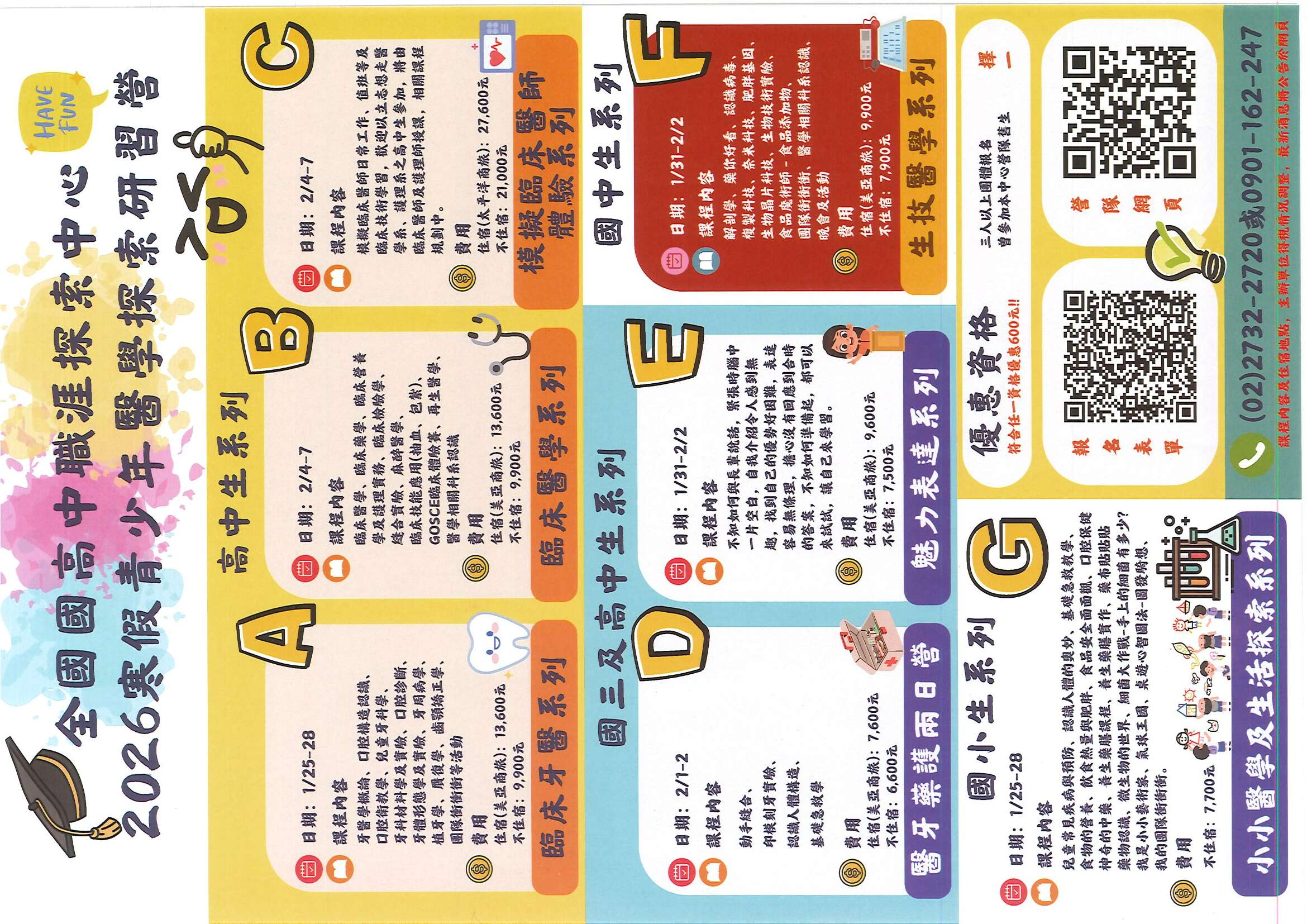 (一)活動名稱:2026寒假青少年醫學探索研習營