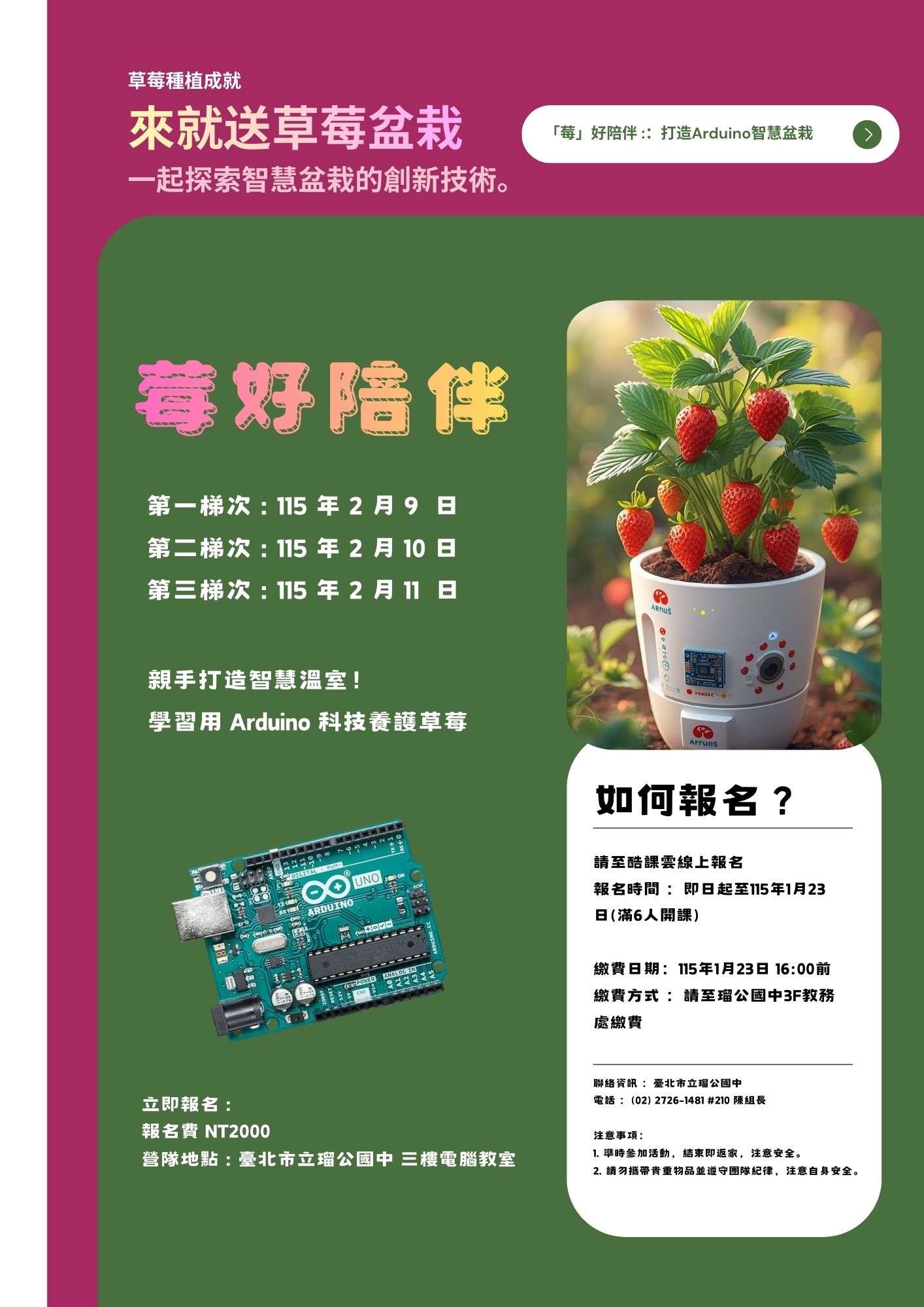 二、營隊名稱:「莓」好陪伴:打造Arduino智慧盆栽