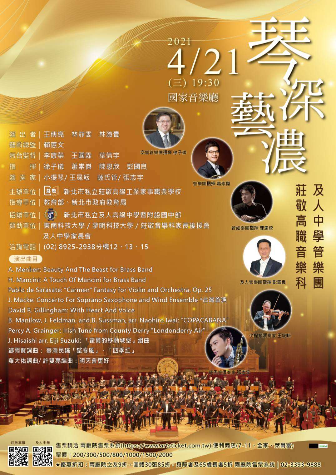 一、本音樂會活動備有公關票,每校限取五張,歡迎有意者統一由校方向主辦學校(新北市私立及人高級中學)索取。