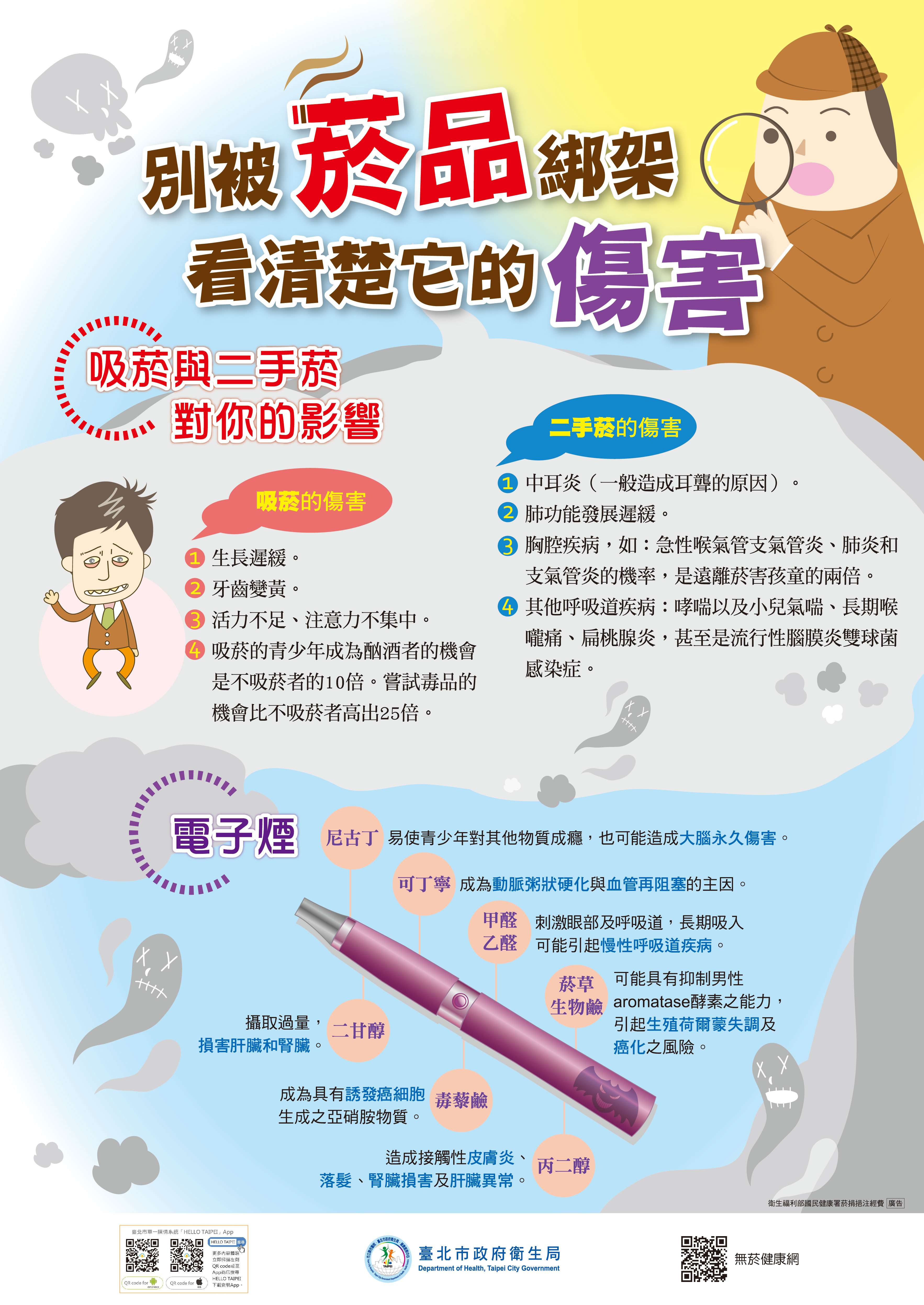 臺北市政府衛生局110年菸害防制工作計畫菸害防制宣導,詳情請參閱附件檔。