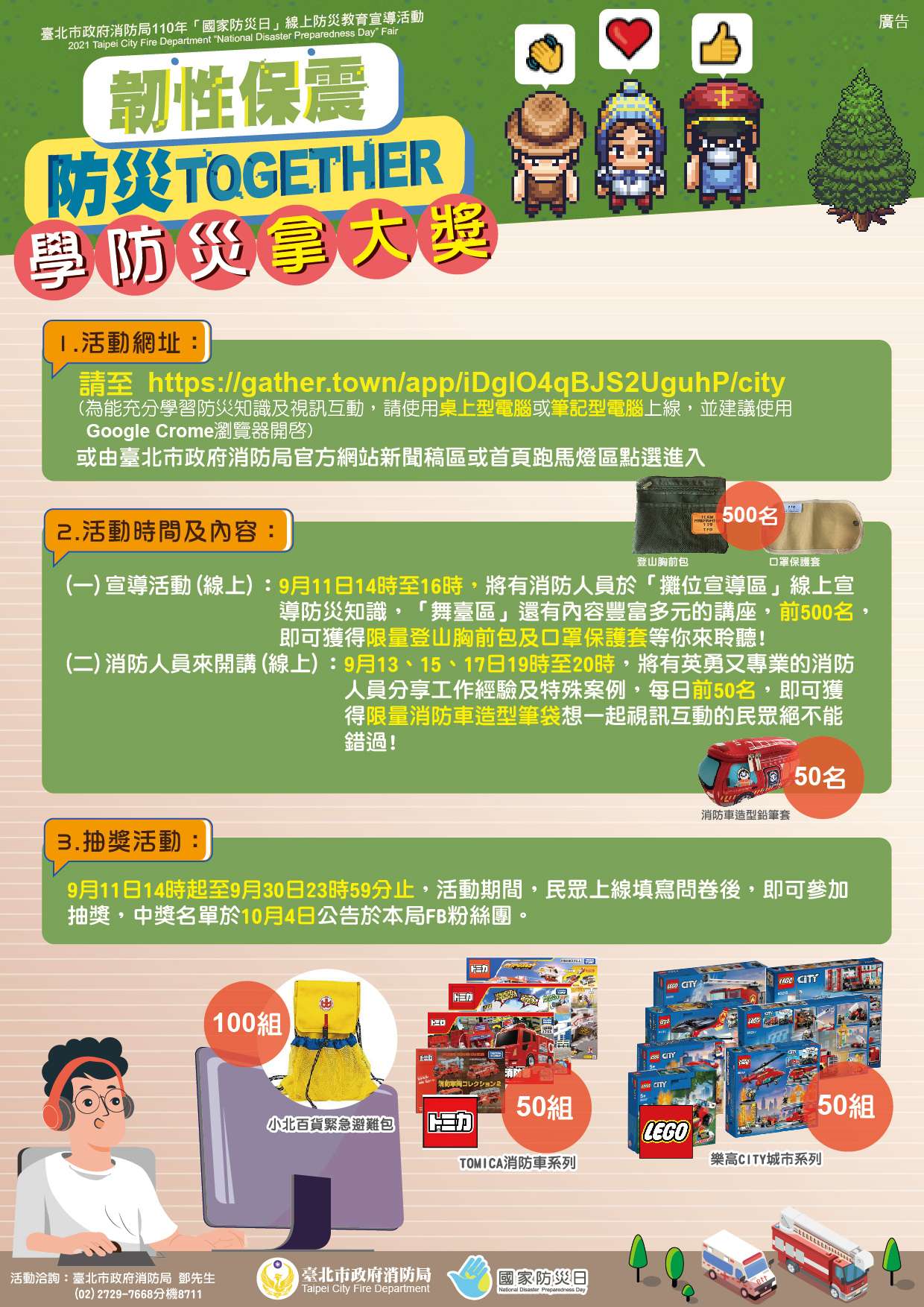 放民眾上線學習防災觀念知識及參加抽獎 。