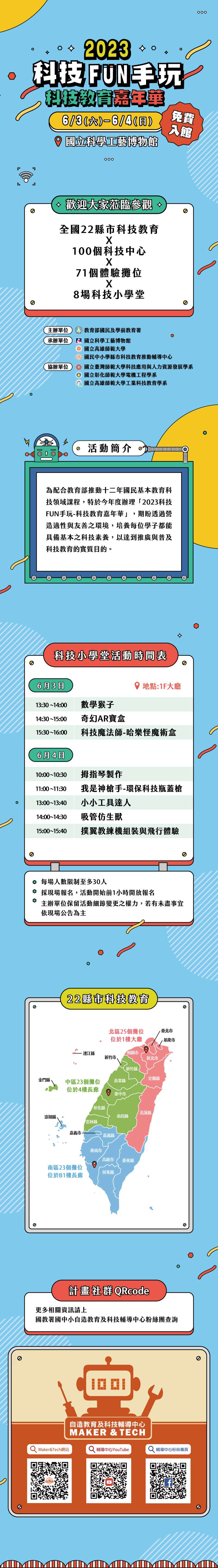 一、旨揭活動係由教育部國民及學前教育署主辦,本館與國立 高雄師範大學共同承辦,活動內容包含全國22縣市科技教 育及100個自造教育及科技中心年度成果展示,期盼藉此機 會引發參與民眾與師生對於科技教育的興趣。