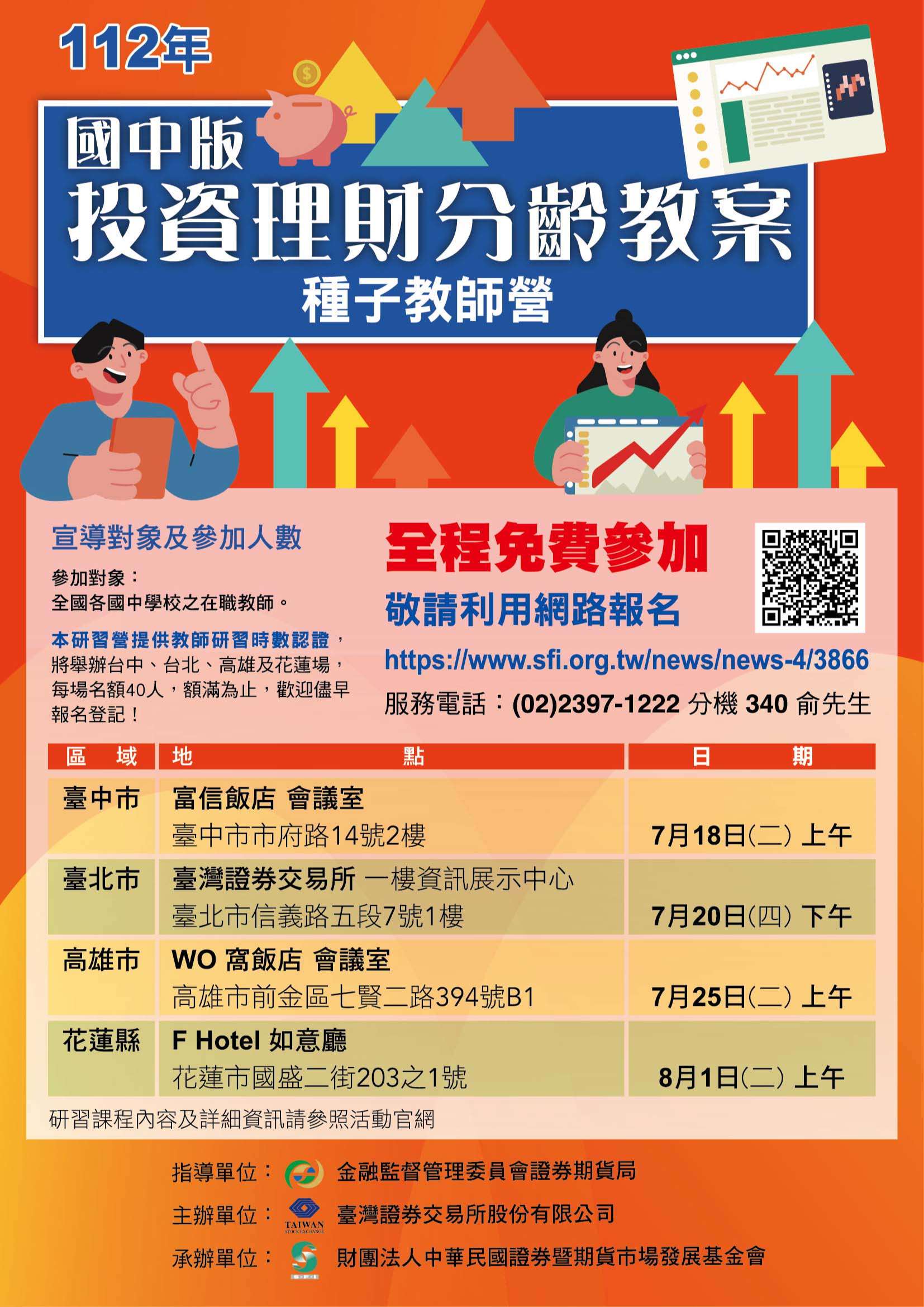 五、已建置「國中版投資理財分齡教案」網站專區,提供全國 各國中學校之在職教師查詢相關訊息,網址為 https://www.sfi.org.tw/news/news-4/3866。