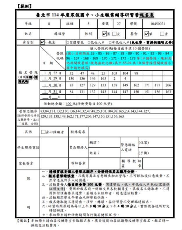 每人每天只需繳交報名費100元,即可參與整天課程含午餐,活動精彩有趣,請鼓勵孩子踴躍試探參加,感謝您。