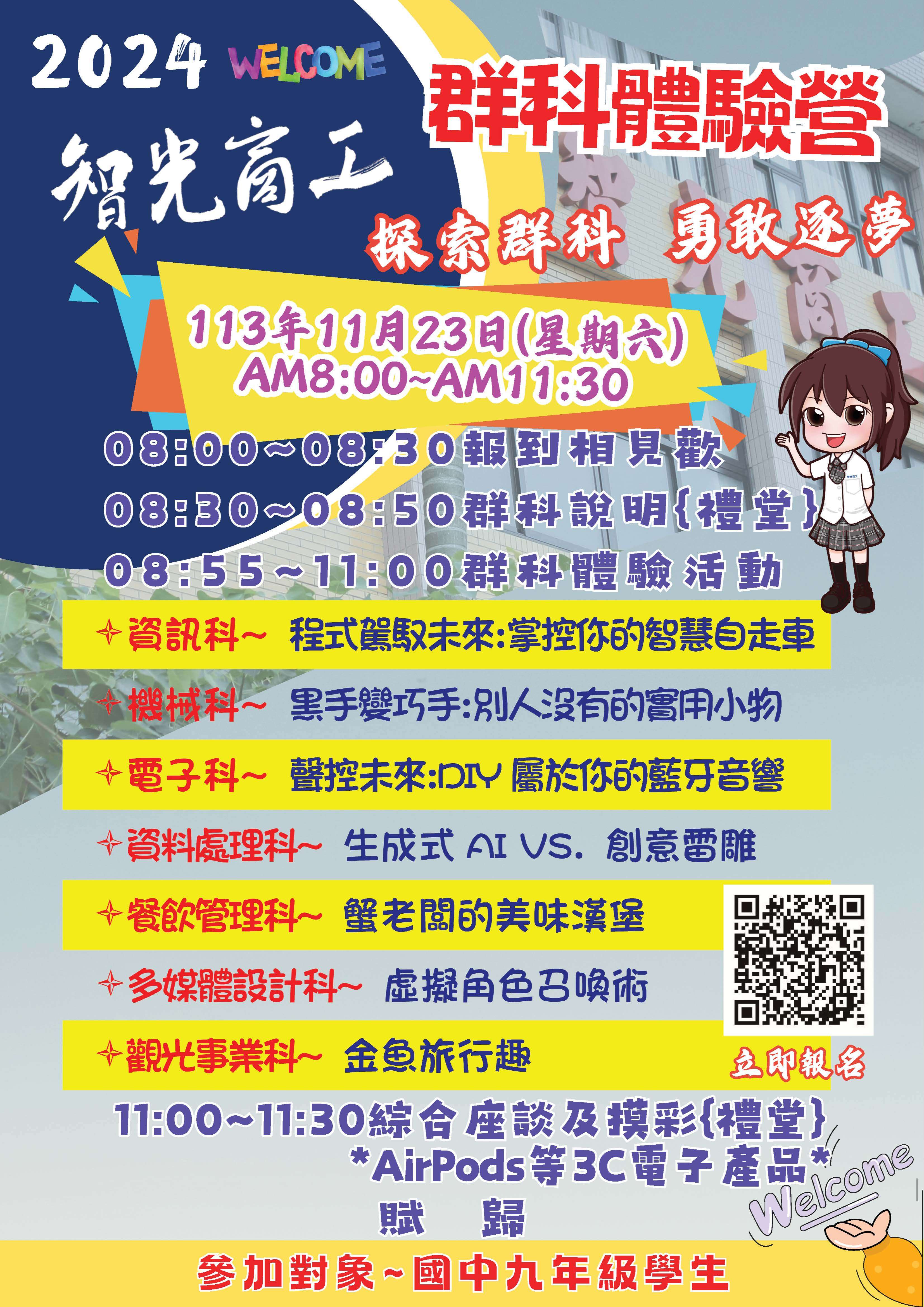 本校辦理群科體驗活動,敬請協助公告並鼓勵踴躍報名參 加。