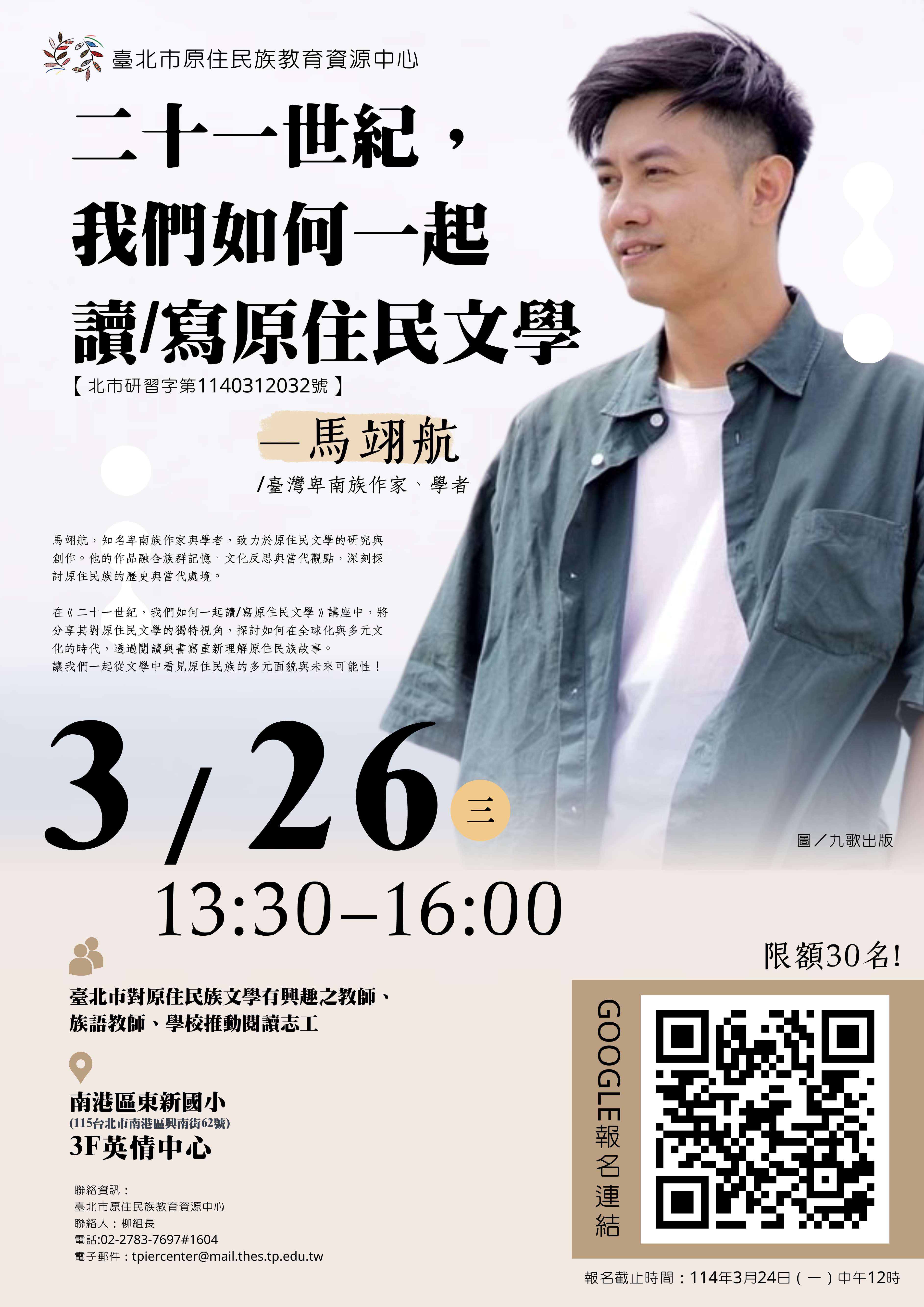 (六)研習對象:臺北市公私立國高中、小學教職員、對原住民族文學有興趣之人員、族語教師、學校推動閱讀志工。