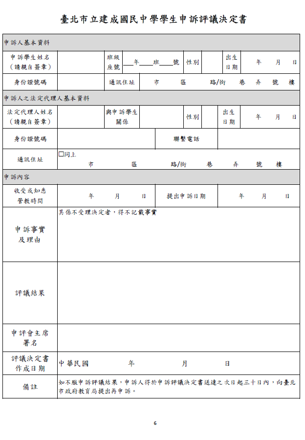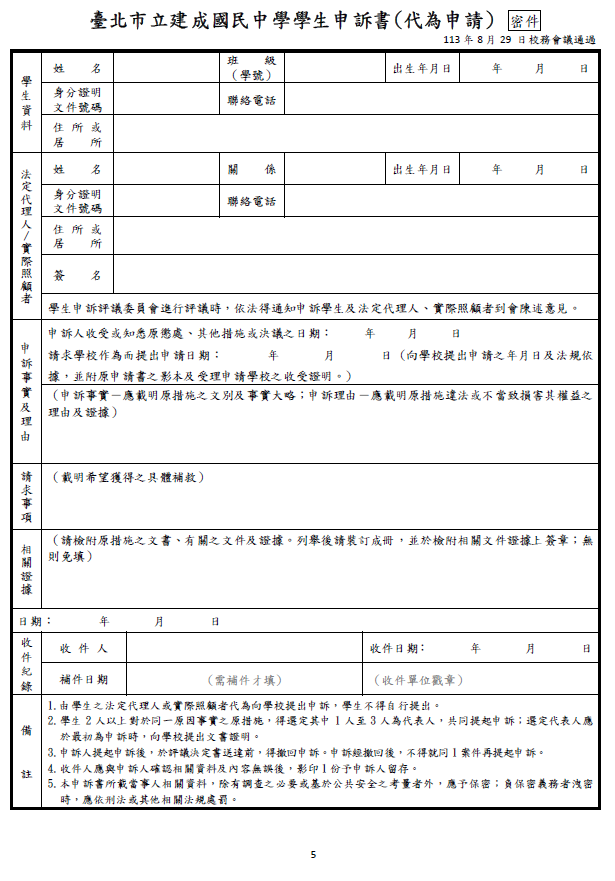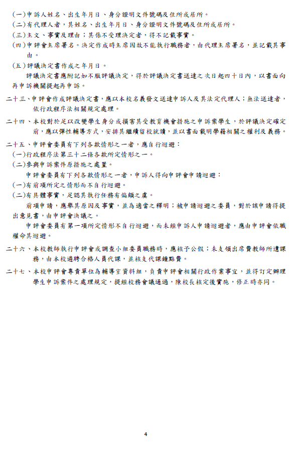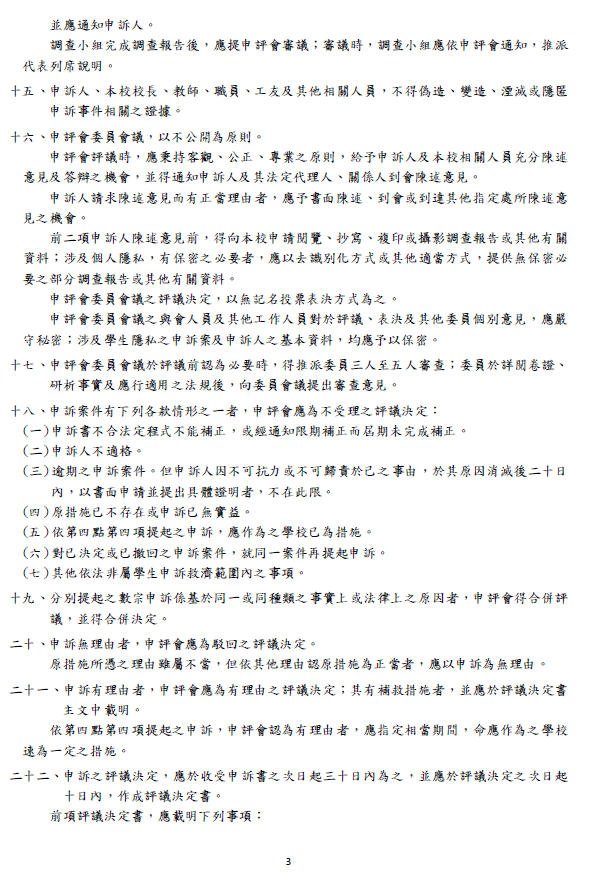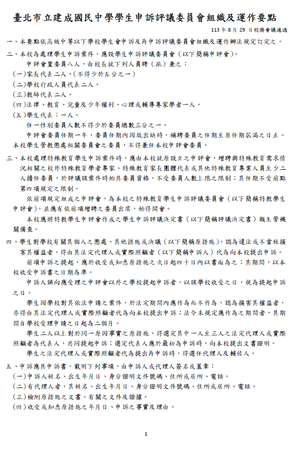 學生申訴評議委員會組織及運作要點+申訴書+決議書(1130829修訂版)