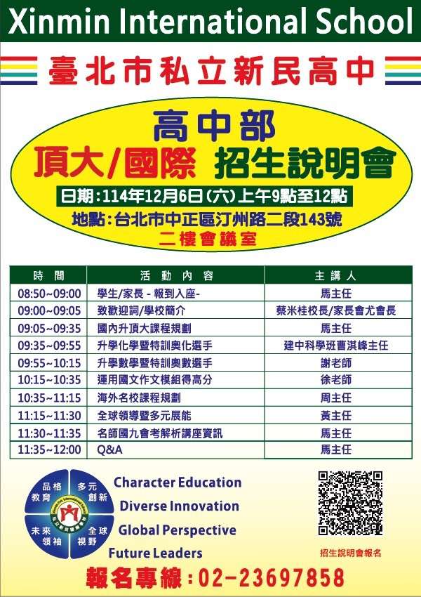 一、本校為協助家長了解本校的教學理念、課程規劃與設計及 升學輔導,我們特別舉辦「高中部學校簡介暨課程說明 會」。